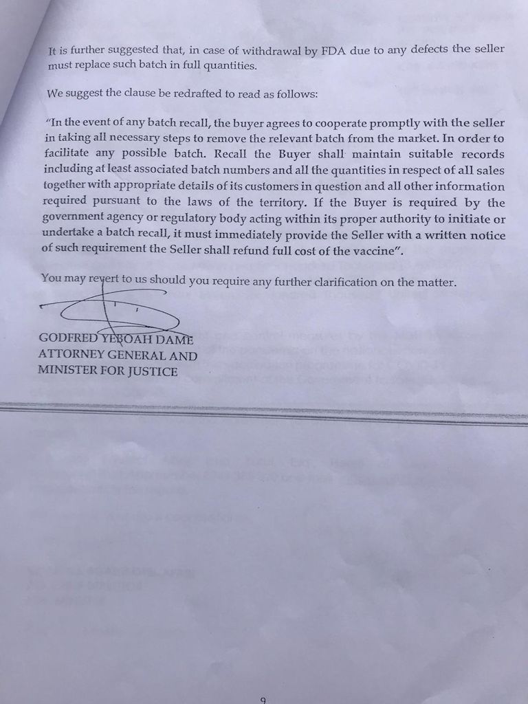 According to the legal opinion of the government’s principal legal advisor on the matter sighted by Citi News, the Health Ministry should have procured from the manufacturer to enhance the resolution of matters associated with probable side effects of the vaccine in case that arises.