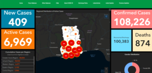Cumulatively, Ghana has confirmed 108,226 cases, while 6,969 of them are active cases, 100,383 people have recovered.