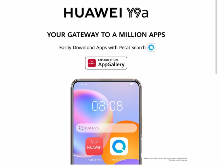 Featuring a 64MP AI Quad Camera and 40W (22.5W) HUAWEI SuperCharge, the HUAWEI Y9a has become a top player in the mid-range smartphone market and is a top-selling product. Pre-installed with AppGallery, along with Petal Search, HUAWEI Y9a users can easily download a huge number of popular mobile apps onto their phone.
