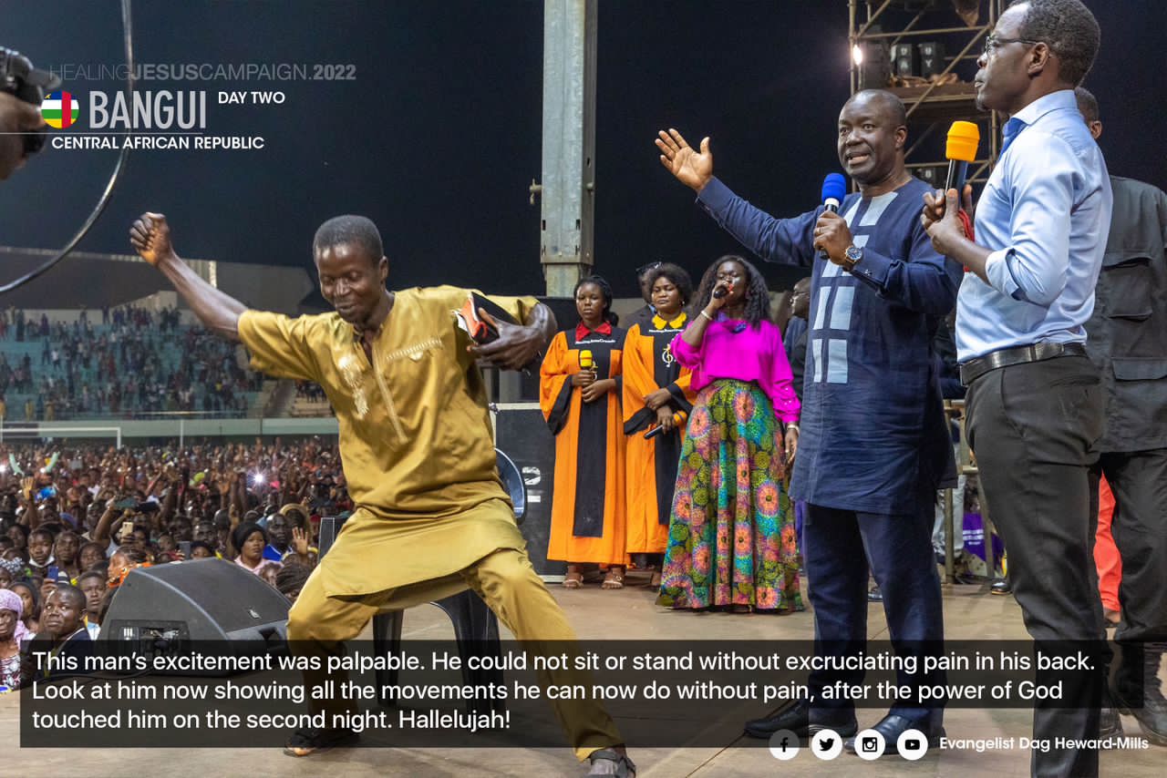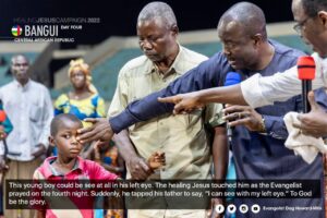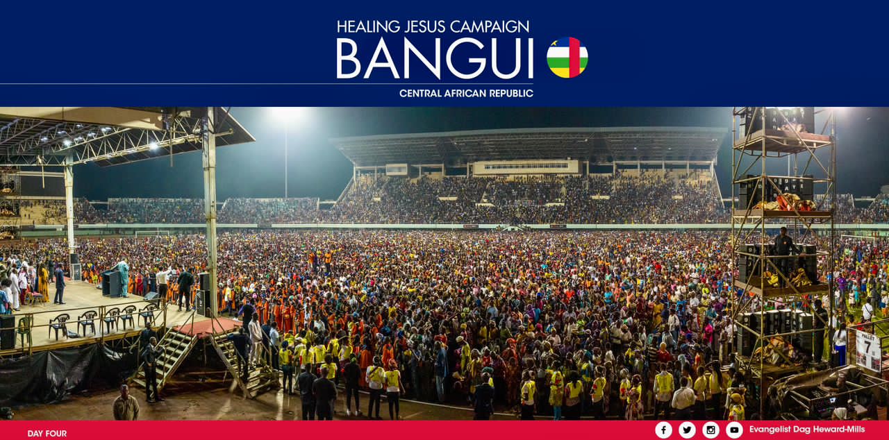 In PicturesWorldAfrica Highlights from the Central African Republic: ‘Healing Jesus Campaign’ By: Editor Date: October 4, 2022 Another amazing season of Healing Jesus campaigns has come to an end in the capital city of the Central African Republic – Bangui. TagsAfricaBanguiCentral African RepublicDag Heward-MillsHealing Jesus CampaignNews Previous articleMixed feelings after 5-day Healing Jesus Campaign in BanguiNext articleAdolescents urged to speak up about abuse of children – Monitoring and Evaluation Officer Editor Share post: FacebookTwitterPinterestWhatsApp SubscribeI want inI've read and accept the Privacy Policy. Popular Zimbabwe releases more than 4,000 inmates under presidential amnesty. Polls open amid heavy security in Ayawaso East by-election Ayawaso-East bye-election sees mixed turnout, smooth voting   Stakeholders back calls for regulation of political party financing, monetisation Demand for Black Stars Jerseys rises ahead of 2026 World Cup Western Region NRSA intensifies campaign on road safety Editor - March 4, 2026 The Western Regional Office of the National Road Safety... Three factions in Nkwanta South hold peace dialogue Editor - March 4, 2026 The National Peace Council has organised a dialogue meeting... Get involved in local governance to improve development and accountability – Mr Awal Editor - March 4, 2026 Mr Mohammed Awal, the Project Lead of Ghana Centre... Ketu South: NDC Youth organiser to contest constituency chairmanship position Editor - March 4, 2026 Mr Elolo White Kelie, the former youth Organiser of... More like thisRelated