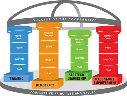 While co-operatives are typically run democratically, relying heavily on member engagement; it is important that they balance this with the strategic management of their business in a way that ensures the continued survival of the Co-operative and its viability as a business concern. It has been reported that most co-operatives in Africa and other emerging economies collapse because of weaknesses in their corporate governance or the total absence thereof. According to a 2014 paper written by Marilyn Scholl, a consultant with CDS Consulting Co-op and Art Sherwood, an Indiana State University Associate Professor of Management; there are four critical pillars upon which corporate governance should be built in any Co-operative organization and strict adherence to this has sustained Total E&P Co-op as a viable business concern.