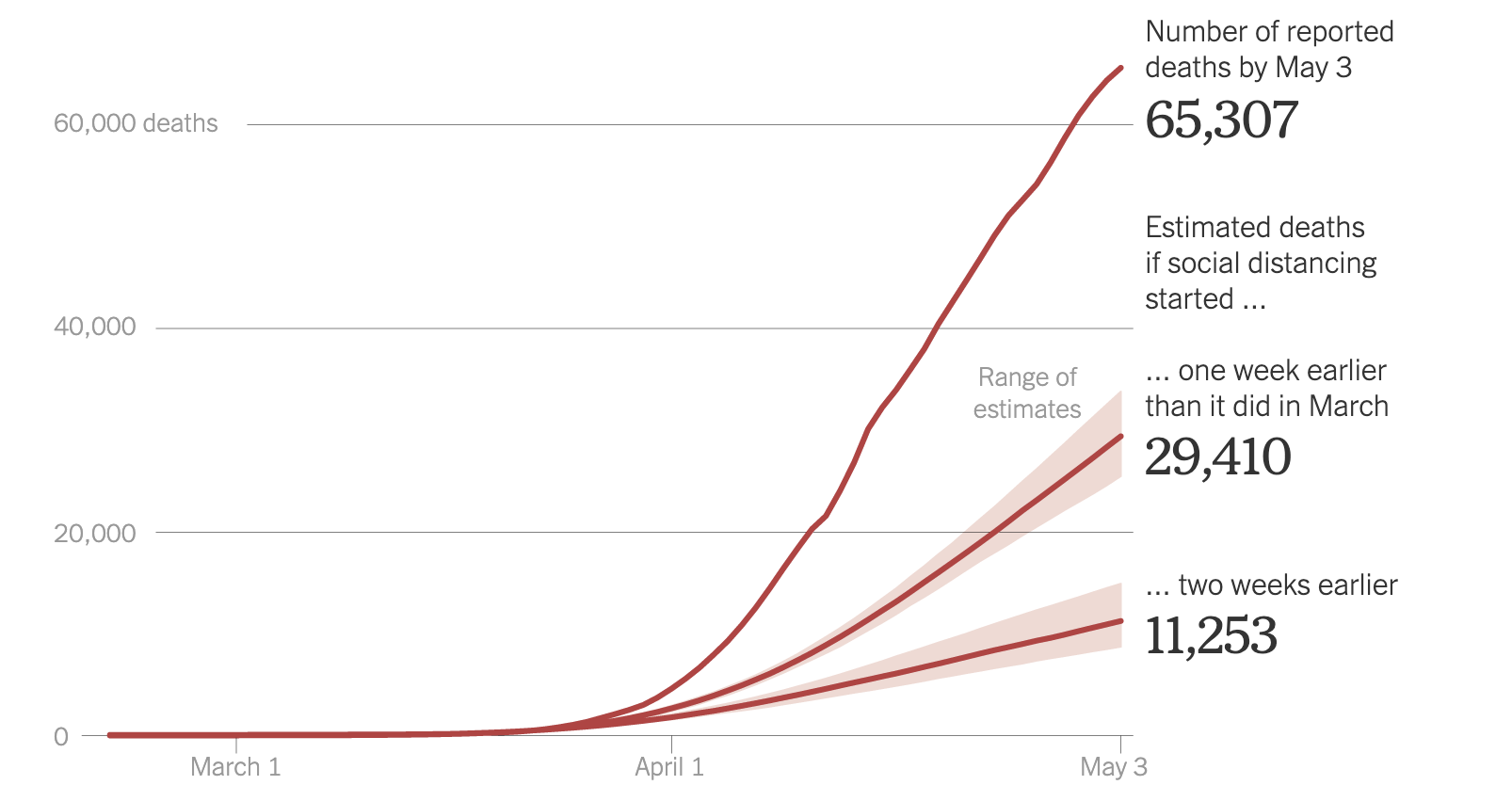 Under that scenario, about 54,000 fewer people would have died by early May.