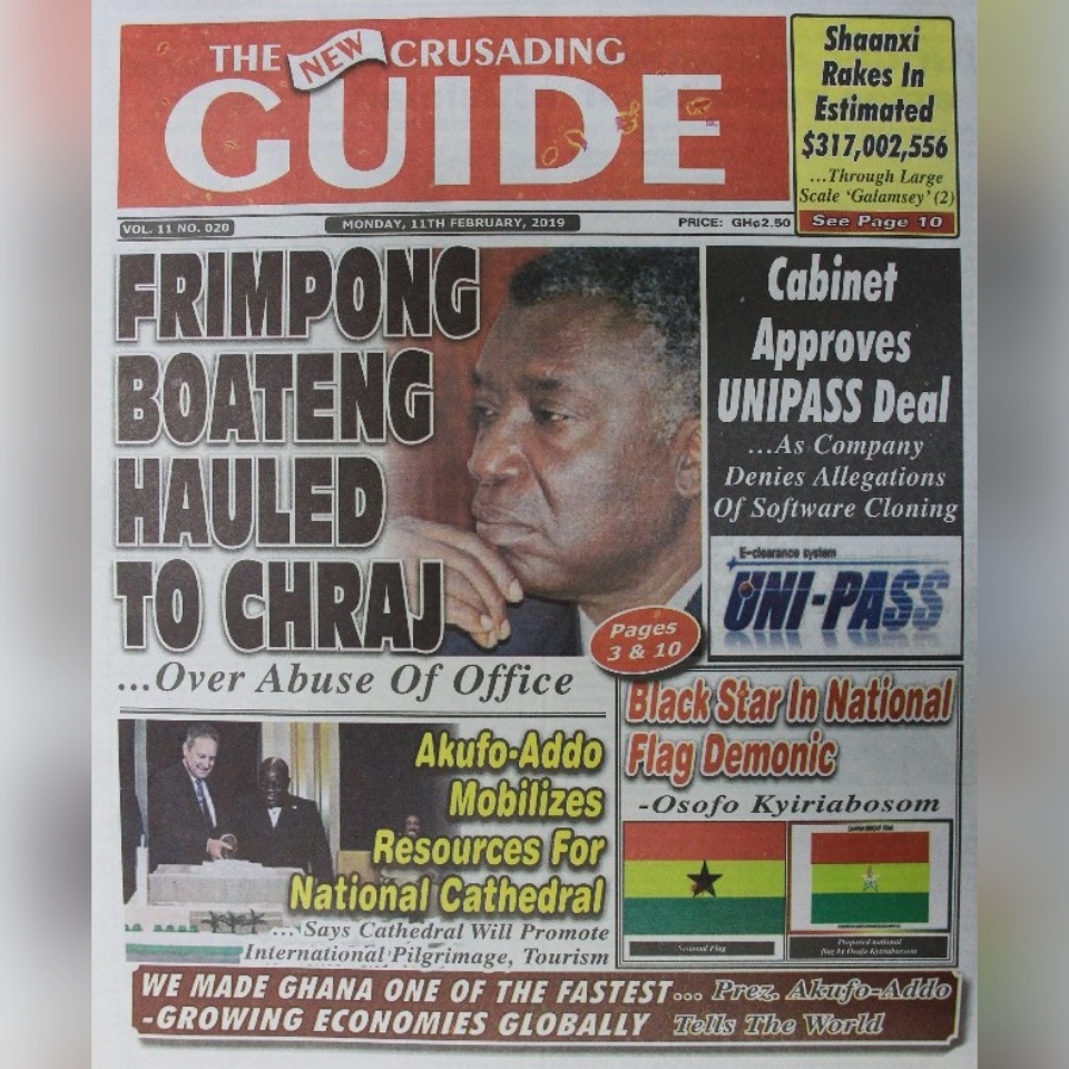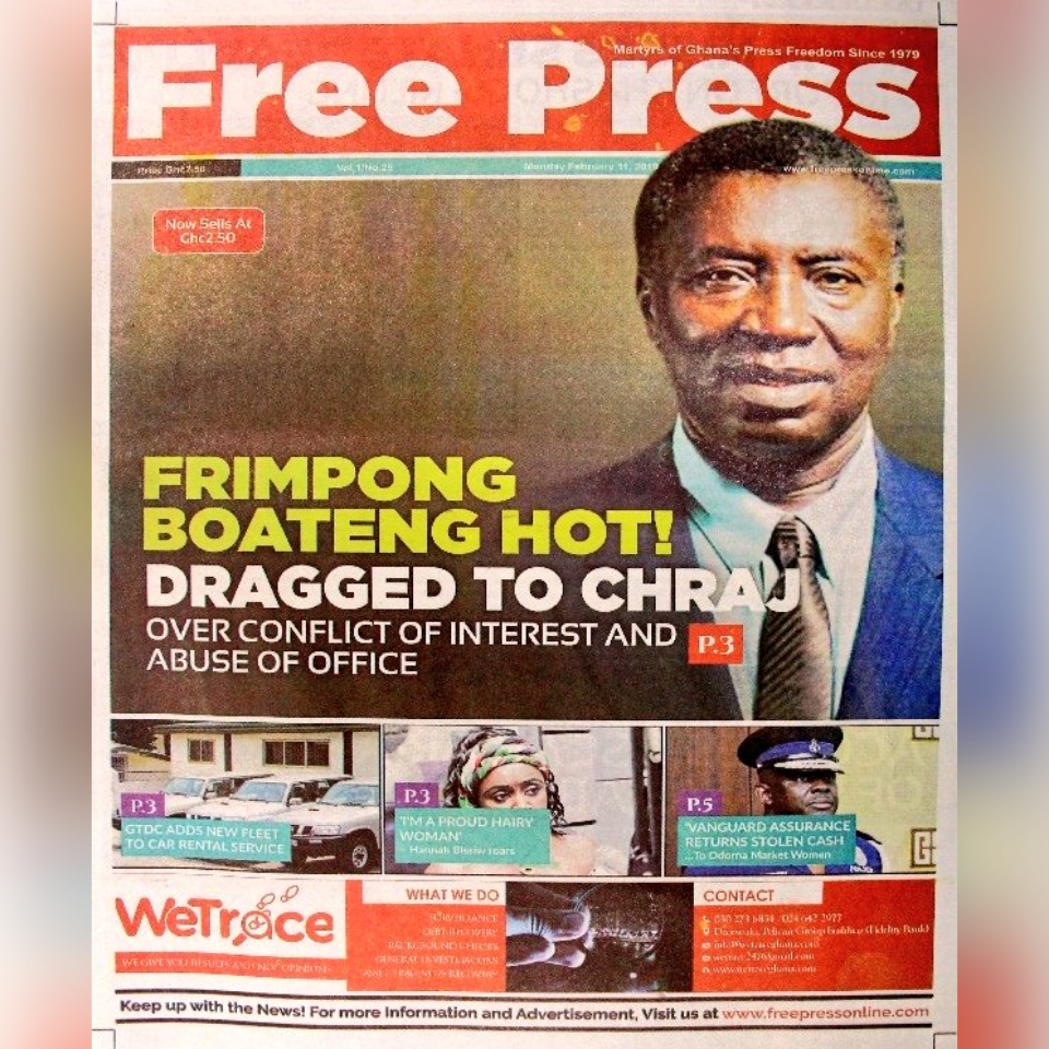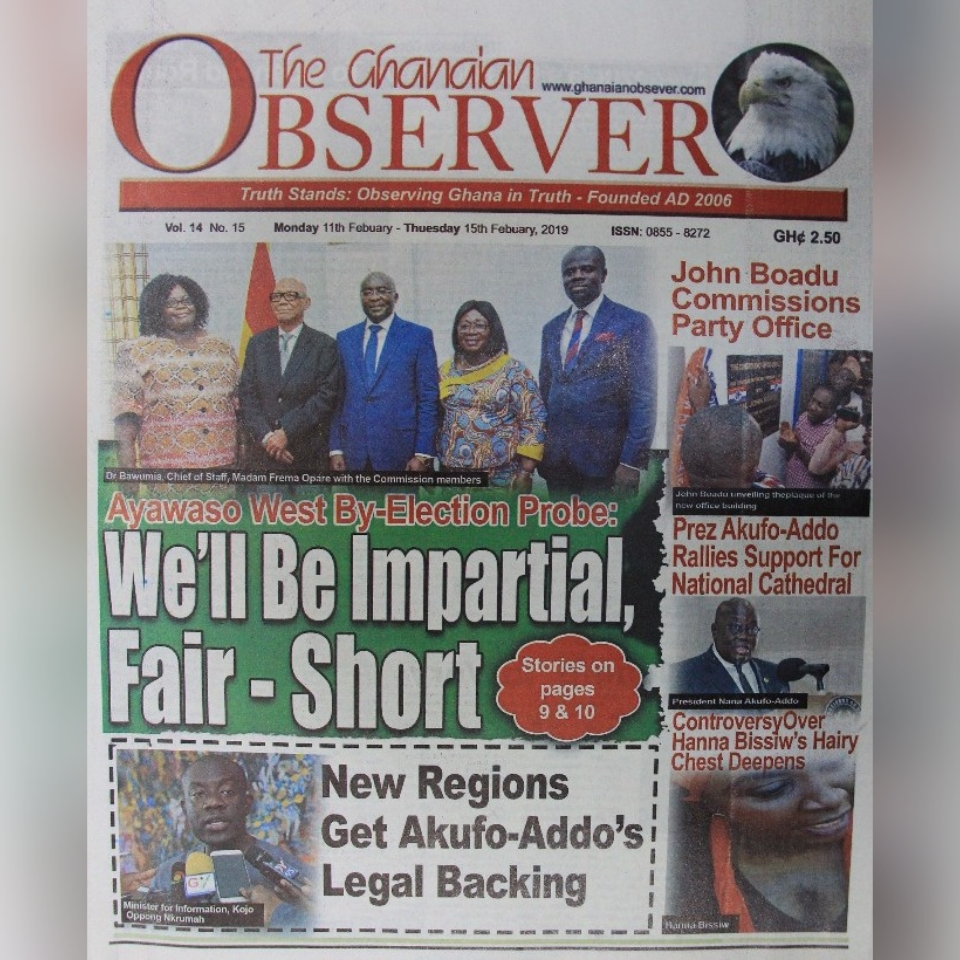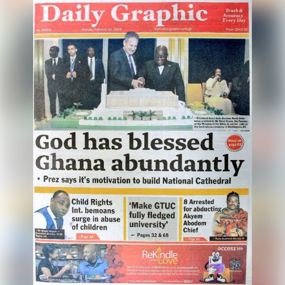 Newspapers Newspaper Headlines: Monday 11th February 2019 By: Editor Date: February 11, 2019 TagsNewspaper HeadlinesNewspapers Previous articleAyensuano: MP donates GH¢100k worth of medical items to improve healthcareNext articlePrioritizing digitization is the way to go for Africa – Ursula Editor Share post: FacebookTwitterPinterestWhatsApp SubscribeI want inI've read and accept the Privacy Policy. Popular Venture Capital Trust Fund transforms mattress company with Ghc4.5m Demand for Black Stars Jerseys rises ahead of 2026 World Cup Trump predicts Iran conflict might take weeks; US citizens in dozens of nations are encouraged to escape. Research gap hindering horticulture growth – Stakeholders  Former Senegalese president joins UN Secretary-General contest. Western Region NRSA intensifies campaign on road safety Editor - March 4, 2026 The Western Regional Office of the National Road Safety... Three factions in Nkwanta South hold peace dialogue Editor - March 4, 2026 The National Peace Council has organised a dialogue meeting... Get involved in local governance to improve development and accountability – Mr Awal Editor - March 4, 2026 Mr Mohammed Awal, the Project Lead of Ghana Centre... Ketu South: NDC Youth organiser to contest constituency chairmanship position Editor - March 4, 2026 Mr Elolo White Kelie, the former youth Organiser of... More like thisRelated