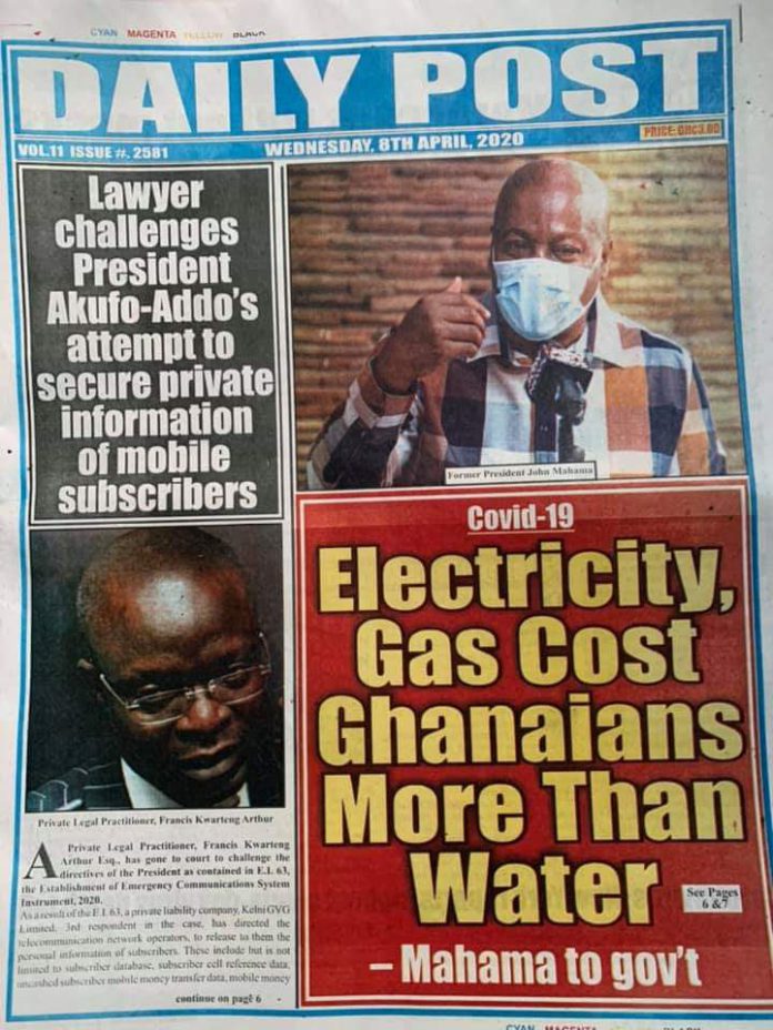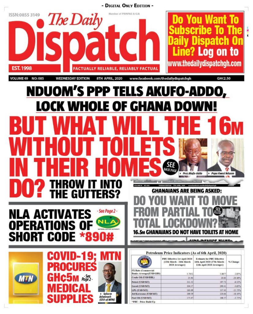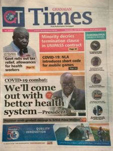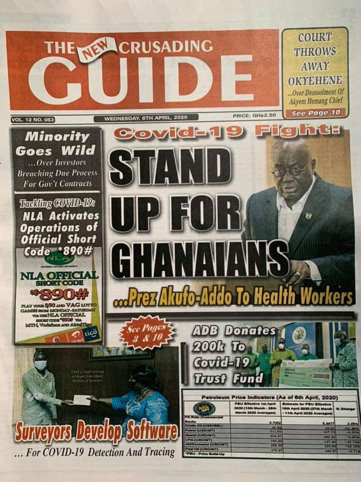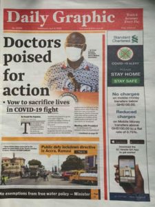 Newspapers Newspaper Headlines Wednesday 8th April 2020 By: Editor Date: April 8, 2020 Newspaper Headlines Wednesday 8th April 2020 TagsNewspaper HeadlinesNewspaper Headlines Wednesday 8th April 2020 Previous articleCoronavirus intensive care — what is involved?Next article43 COVID-19 contacts in Tema test negative Editor Share post: FacebookTwitterPinterestWhatsApp SubscribeI want inI've read and accept the Privacy Policy. Popular Cavan Sullivan is expected to leave Manchester City immediately on a two-year European loan as a former USMNT great urges patience with the MLS... Govt’t announces expiration of DDEP-induced restrictions on domestic bond issuance GCB Bank reaffirms commitment to Ghana–China economic ties Portugal captain Ronaldo sent an ominous seven-word warning by Colombia icon ahead of the 2026 World Cup encounter. The Israeli army issued new evacuation advisories in Lebanon. Western Region NRSA intensifies campaign on road safety Editor - March 4, 2026 The Western Regional Office of the National Road Safety... Three factions in Nkwanta South hold peace dialogue Editor - March 4, 2026 The National Peace Council has organised a dialogue meeting... Get involved in local governance to improve development and accountability – Mr Awal Editor - March 4, 2026 Mr Mohammed Awal, the Project Lead of Ghana Centre... Ketu South: NDC Youth organiser to contest constituency chairmanship position Editor - March 4, 2026 Mr Elolo White Kelie, the former youth Organiser of... More like thisRelated