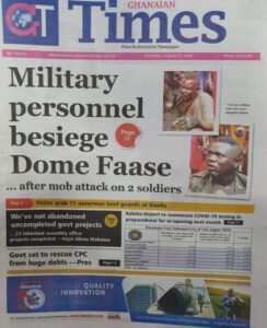 Newspapers Thursday 27th August 2020 By: Editor Date: August 27, 2020 Thursday 27th August 2020 TagsNewspaper HeadlinesNewspapers Previous articleMalawi: the Mzuzu-Nkhata Bay road now among the country’s safest roads, thanks to African Development Bank supportNext articleFriday 28th August 2020 Editor Share post: FacebookTwitterPinterestWhatsApp SubscribeI want inI've read and accept the Privacy Policy. Popular Trump predicts Iran conflict might take weeks; US citizens in dozens of nations are encouraged to escape. Centre-Right Legacy: Empowering Ghanaians through economic freedom – Afenyo-Markin Stakeholders back calls for regulation of political party financing, monetisation Oil prices jump as Iran threatens to strike ships in the Strait of Hormuz. France plans to expand its nuclear arsenal and strengthen European weapons cooperation. Western Region NRSA intensifies campaign on road safety Editor - March 4, 2026 The Western Regional Office of the National Road Safety... Three factions in Nkwanta South hold peace dialogue Editor - March 4, 2026 The National Peace Council has organised a dialogue meeting... Get involved in local governance to improve development and accountability – Mr Awal Editor - March 4, 2026 Mr Mohammed Awal, the Project Lead of Ghana Centre... Ketu South: NDC Youth organiser to contest constituency chairmanship position Editor - March 4, 2026 Mr Elolo White Kelie, the former youth Organiser of... More like thisRelated