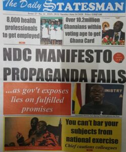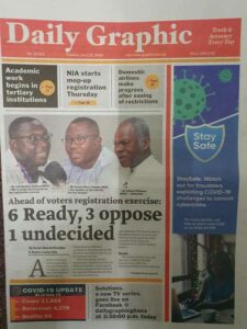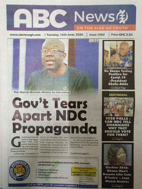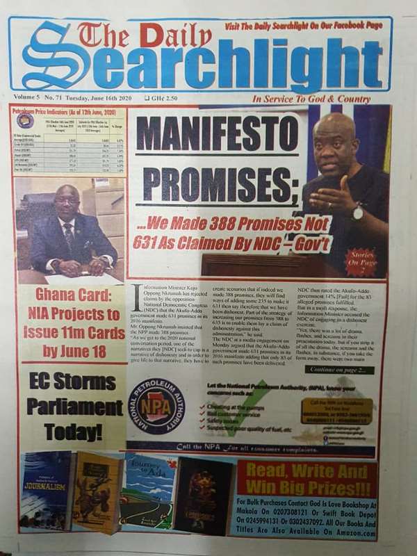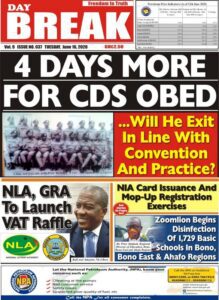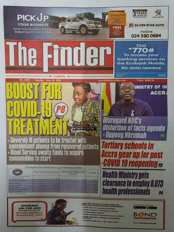 Newspapers Tuesday 16th June 2020 By: Editor Date: June 16, 2020 Tuesday 16th June 2020 TagsNewspaper HeadlinesNewspapersTuesday 16th June 2020 Previous articleNLA, GRA partner to conduct VAT raffle to enhance govt revenue mobilisationNext articleSearch for cure for COVID-19 disease: Noguchi poised to develop vaccine Editor Share post: FacebookTwitterPinterestWhatsApp SubscribeI want inI've read and accept the Privacy Policy. Popular Centre-Right Legacy: Empowering Ghanaians through economic freedom – Afenyo-Markin Venture Capital Trust Fund transforms mattress company with Ghc4.5m Trump predicts Iran conflict might take weeks; US citizens in dozens of nations are encouraged to escape. Demand for Black Stars Jerseys rises ahead of 2026 World Cup Govt’t announces expiration of DDEP-induced restrictions on domestic bond issuance Western Region NRSA intensifies campaign on road safety Editor - March 4, 2026 The Western Regional Office of the National Road Safety... Three factions in Nkwanta South hold peace dialogue Editor - March 4, 2026 The National Peace Council has organised a dialogue meeting... Get involved in local governance to improve development and accountability – Mr Awal Editor - March 4, 2026 Mr Mohammed Awal, the Project Lead of Ghana Centre... Ketu South: NDC Youth organiser to contest constituency chairmanship position Editor - March 4, 2026 Mr Elolo White Kelie, the former youth Organiser of... More like thisRelated